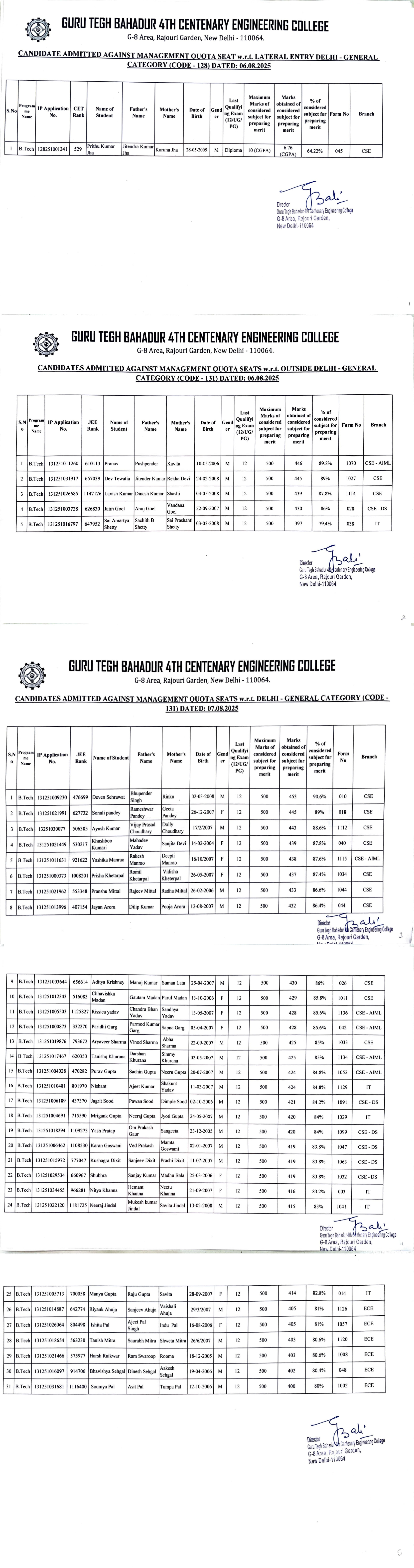 List of Candidates admitted against Management Quota 2025-26 Dated:6.8.2025 & 7.8.2025 for Code 128 & 131