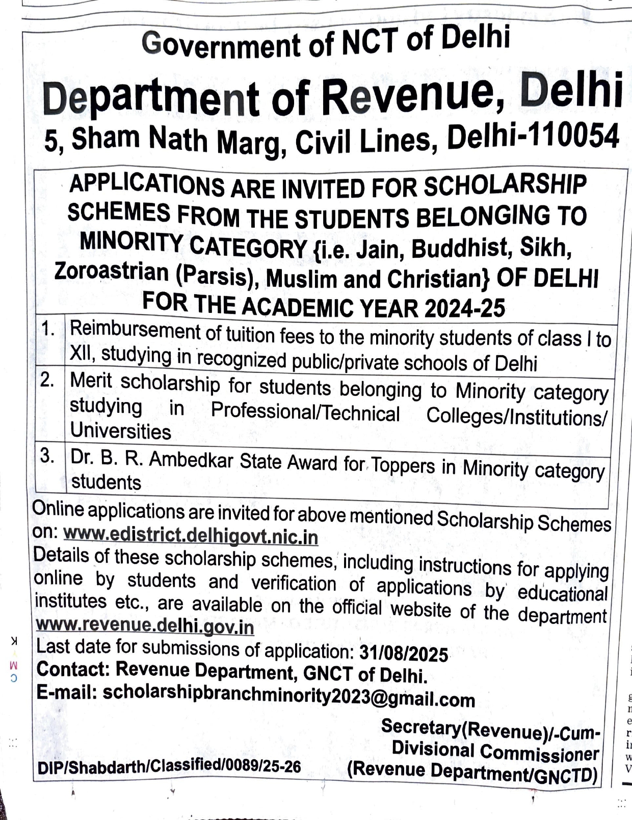SCHOLARSHIP SCHEME FOR MINORITY 2024-25