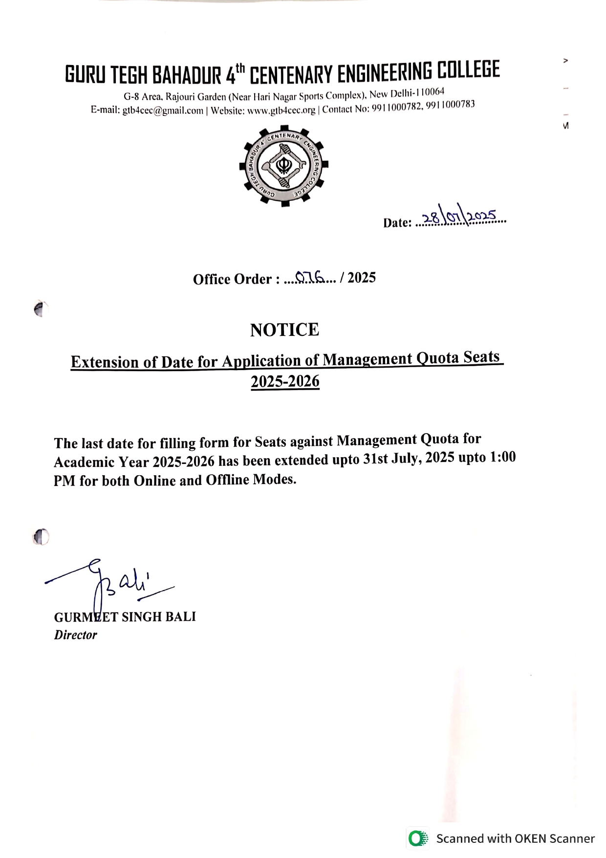 DATE EXTENSION FOR MANAGEMENT QUOTA SEATS (2025-2026)
